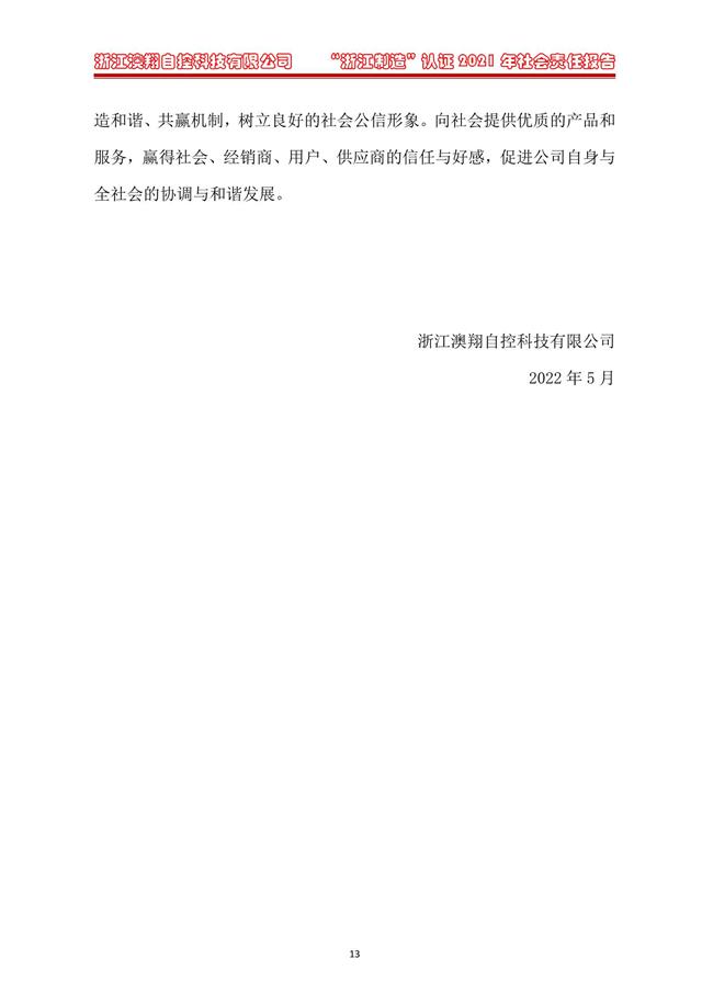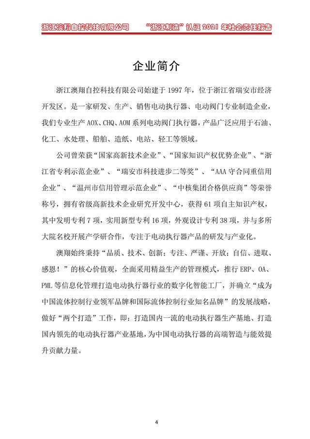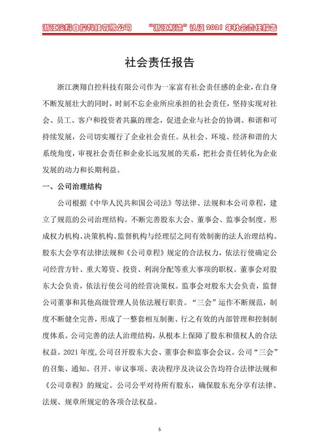新聞中心 當(dāng)前位置: 電動(dòng)閥門廠家> 新聞資訊> 新聞中心> 澳翔-2021年社會(huì)責(zé)任報(bào)告